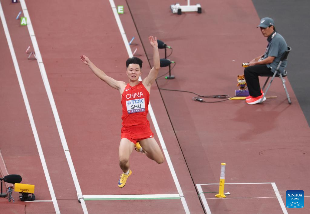 Shu Heng of China competes during the men's long jump qualification at the 2025 World Athletics Championships in Tokyo, Japan, Sept. 15, 2025. (Xinhua/Jia Haocheng)