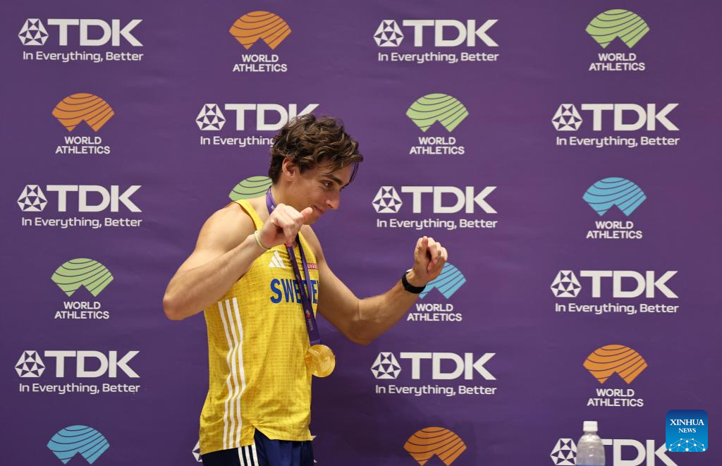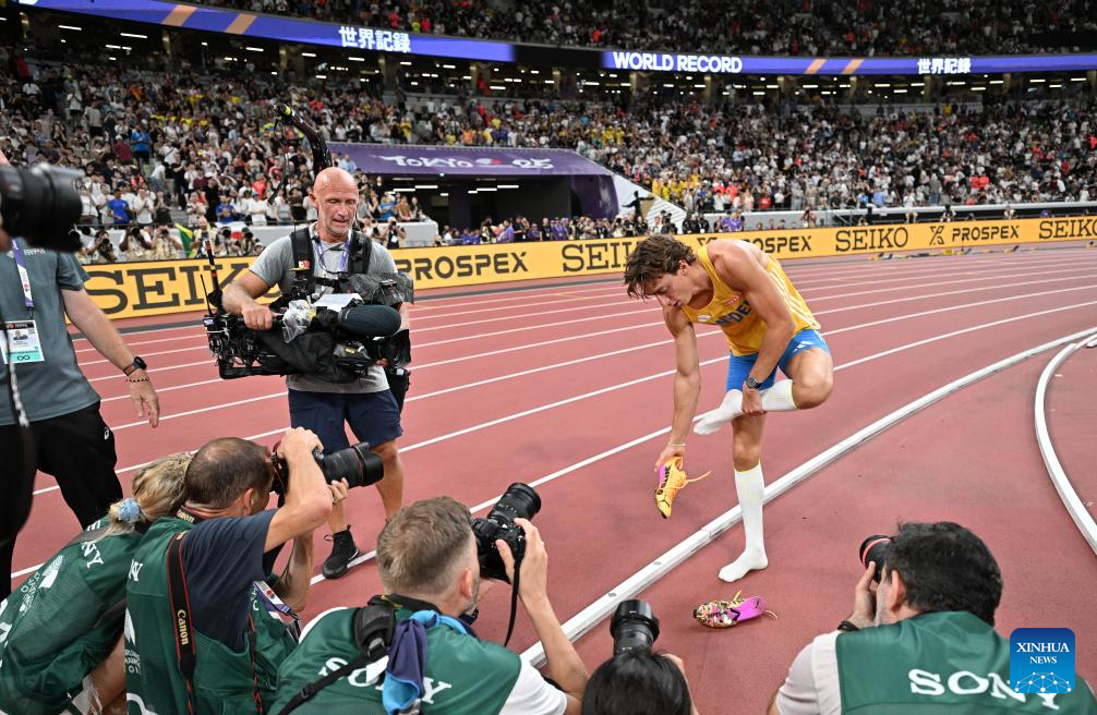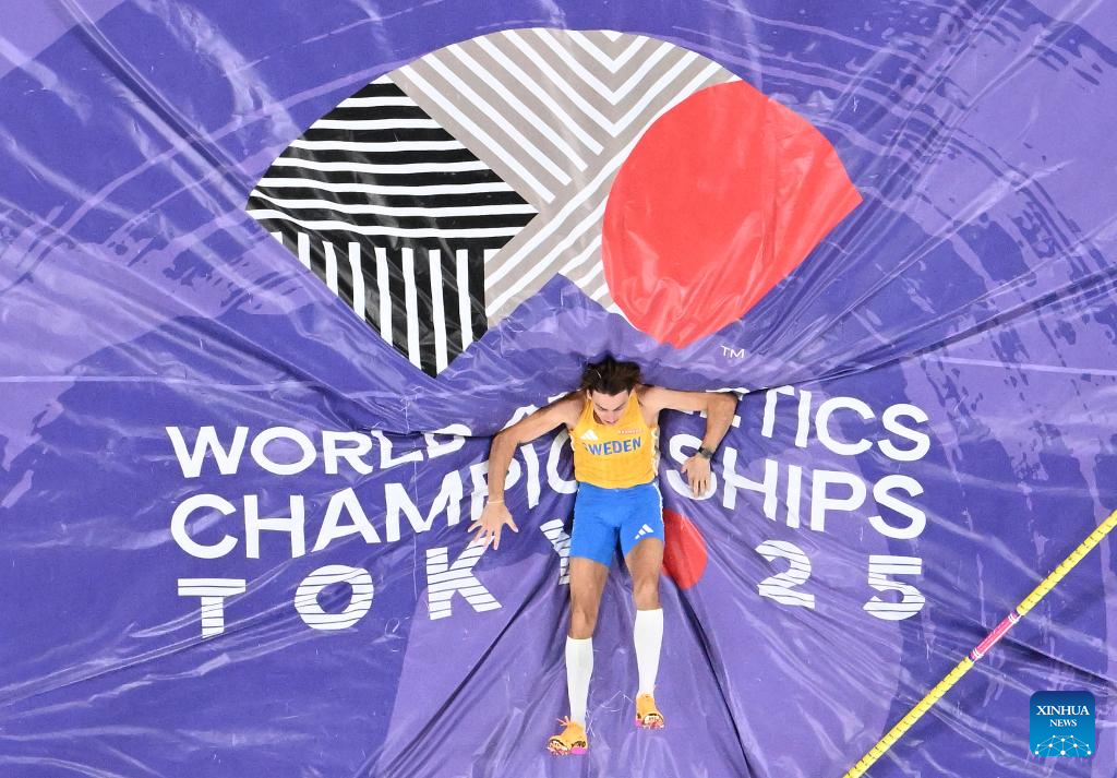 TOKYO, Sept. 15 (Xinhua) -- The third day of the World Athletics Championships in Tokyo produced five gold medals on Monday, highlighted by Sweden's Armand Duplantis clearing 6.30 meters to break the men's pole vault world record for the 14th time in his career.
