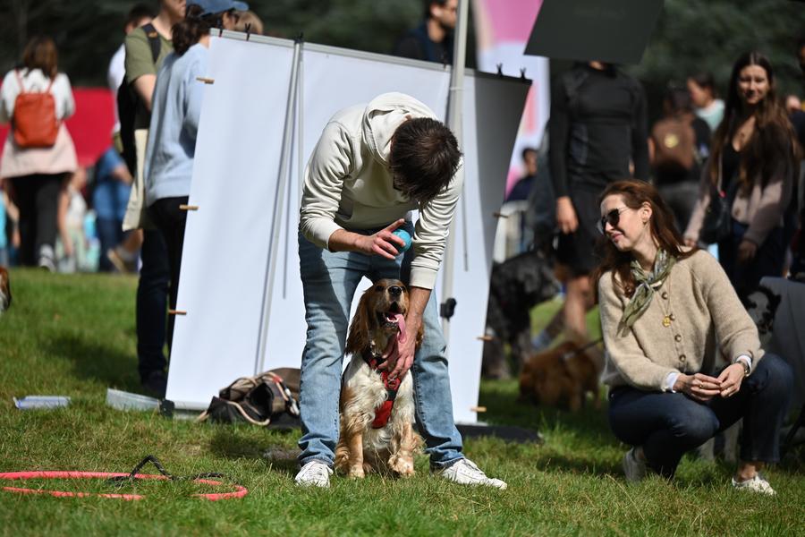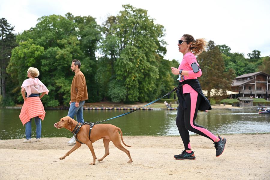 BRUSSELS, Sept. 15 (Xinhua) -- The Dogolympics, a dog-themed sports event featuring canicross races, agility challenges and dog-and-owner yoga sessions, drew many pet lovers to the green surroundings of Bois de la Cambre in the Belgian capital Brussels on Sunday.