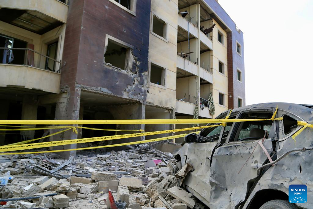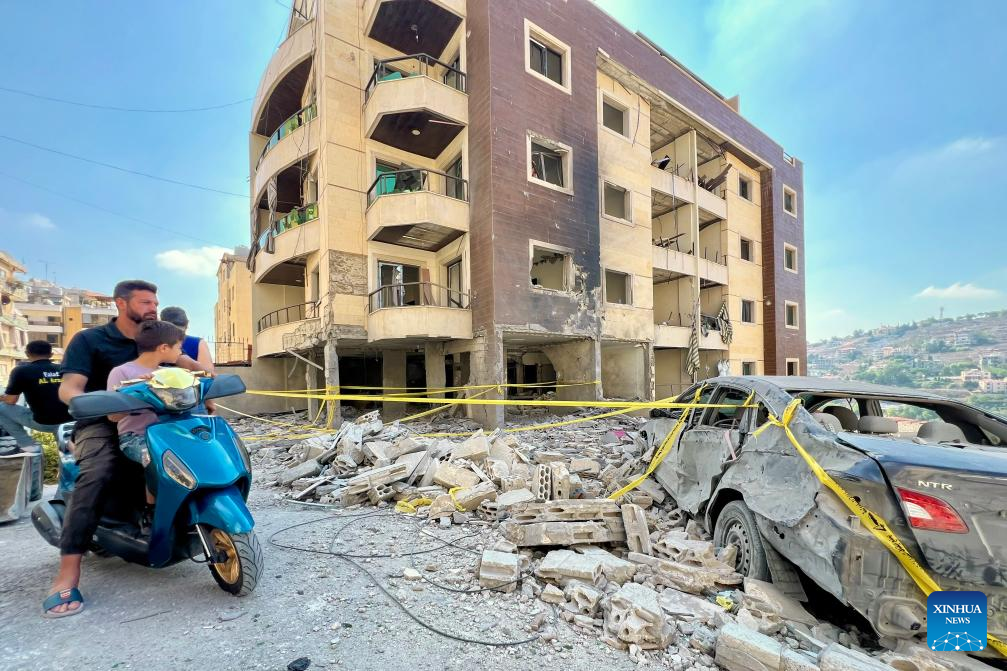 This photo taken on Sept. 16 shows a building attacked by Israeli forces in Nabatieh, southern Lebanon. The Israeli military said late on Monday it struck a Hezbollah command site in southern Lebanon, as cross-border tensions persist despite a ceasefire. (Photo by Ali Hashisho/Xinhua)