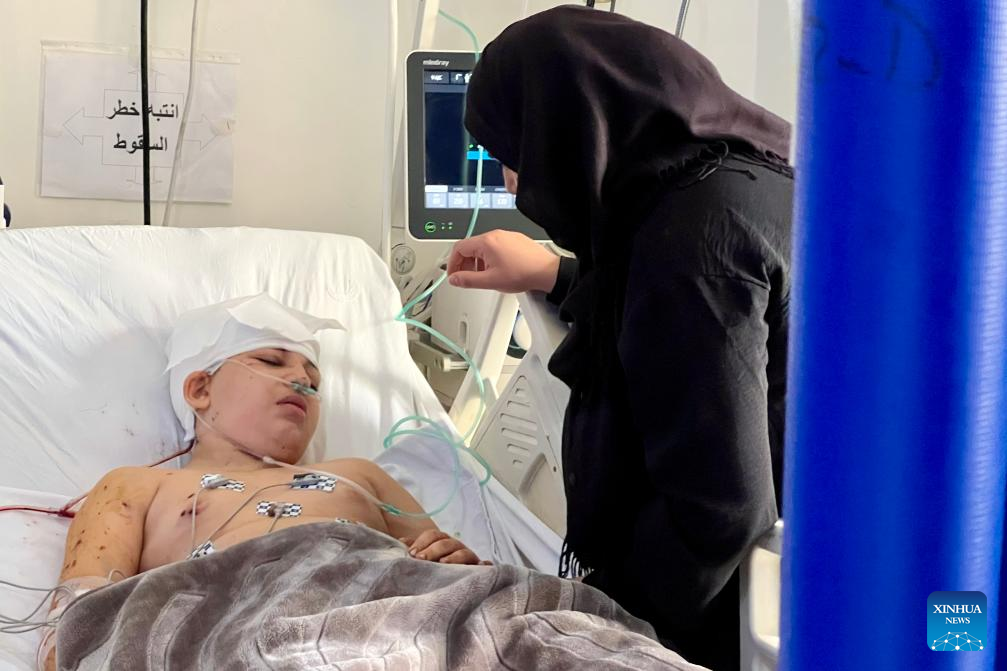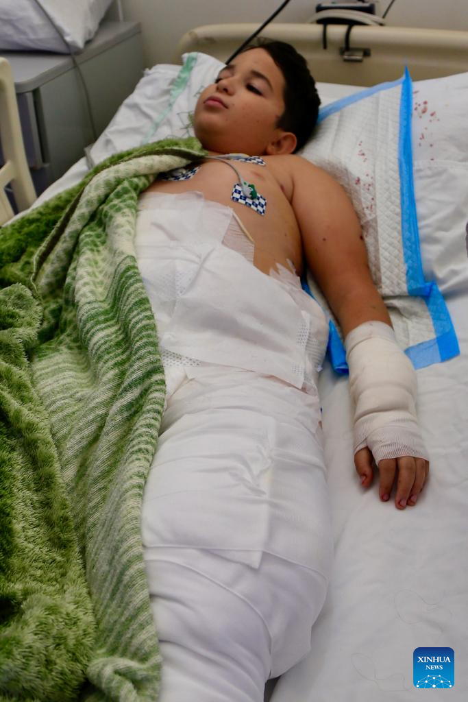 A boy injured in an Israeli attack receives treatment at a hospital in Nabatieh, southern Lebanon, on Sept. 16, 2025. The Israeli military said late on Monday it struck a Hezbollah command site in southern Lebanon, as cross-border tensions persist despite a ceasefire. (Photo by Ali Hashisho/Xinhua)