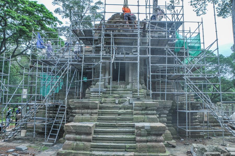 PHNOM PENH, Sept. 16 (Xinhua) -- The restoration of the centuries-old Chorm Temple in northwest Cambodia's Angkor Archaeological Park is nearing completion, the APSARA National Authority (ANA) said in a news release on Monday.