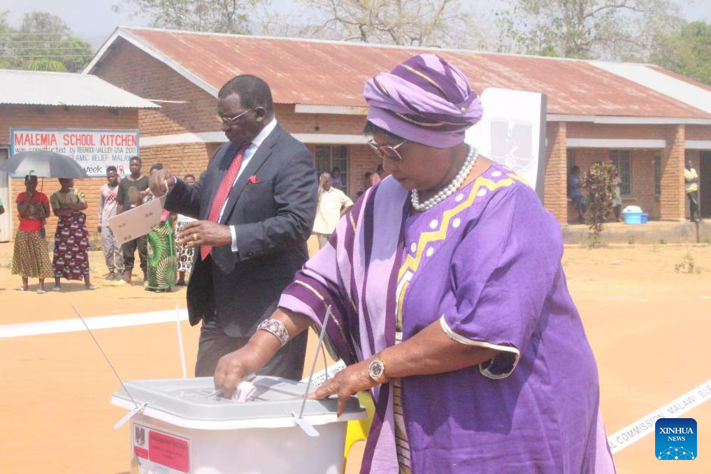 Seventeen presidential candidates are contesting, including incumbent President Lazarus Chakwera and former presidents Peter Mutharika and Joyce Banda. Other presidential hopefuls include United Transformation Movement's candidate Dalitso Kabambe, former President Bakili Muluzi's son Atupele Muluzi, and incumbent Vice President Michael Usi. (Photo by Joseph Mizere/Xinhua)