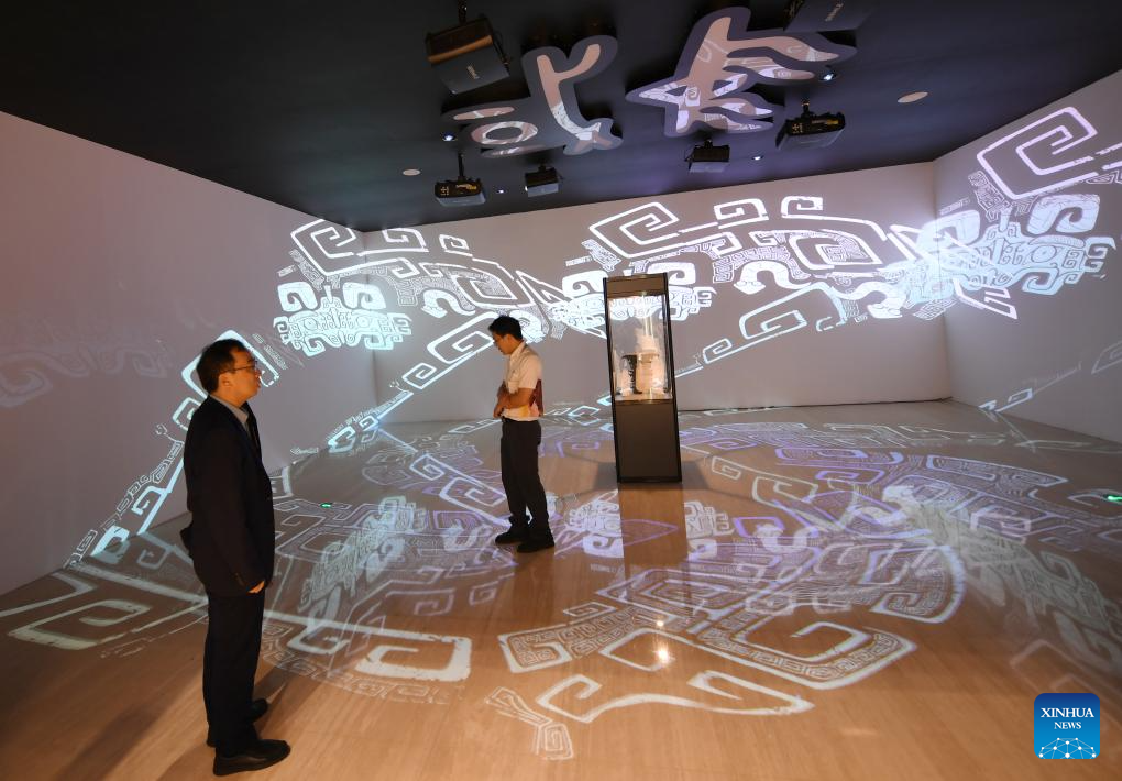 Guests are seen during an exhibition of the 2025 World Internet Conference Cultural Heritage Digitalization Forum in Xi'an, northwest China's Shaanxi Province, Sept. 17, 2025. The forum opened on Wednesday in Xi'an, home to the world-famous Terracotta Warriors.