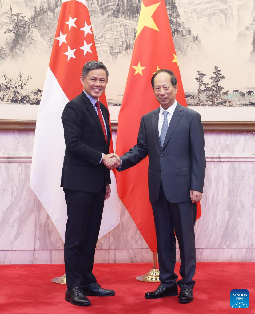 BEIJING, Sept. 17 (Xinhua) -- Shi Taifeng, a senior official of the Communist Party of China (CPC), met with Chan Chun Sing, Singapore's Coordinating Minister for Public Services and Minister for Defence, in Beijing on Wednesday.