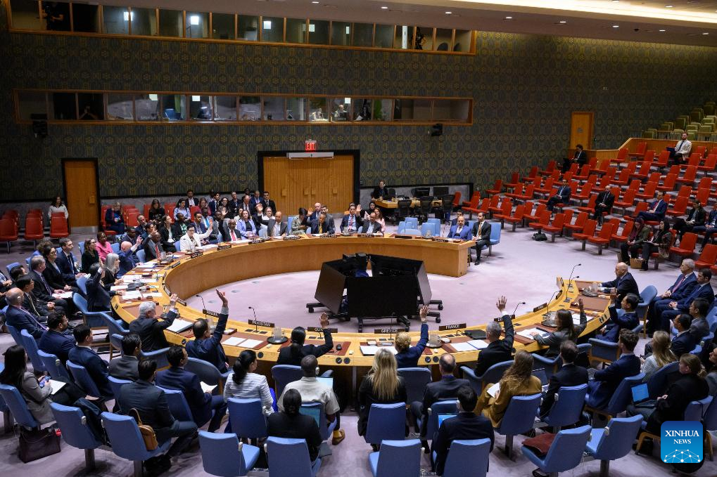 Representatives vote on a draft resolution during a Security Council meeting at the UN headquarters in New York, Sept. 17, 2025. The United Nations Security Council on Wednesday adopted a resolution on the return of Kuwaiti and third-country missing persons as a result of the 1990 Iraqi invasion. (Loey Felipe/UN Photo/Handout via Xinhua)