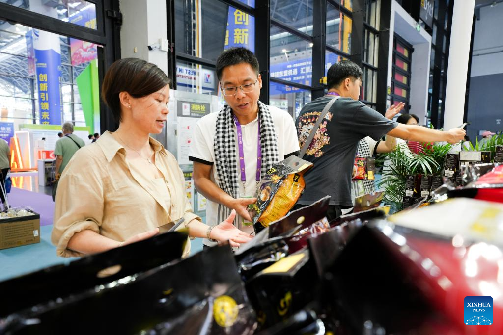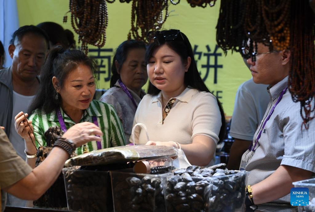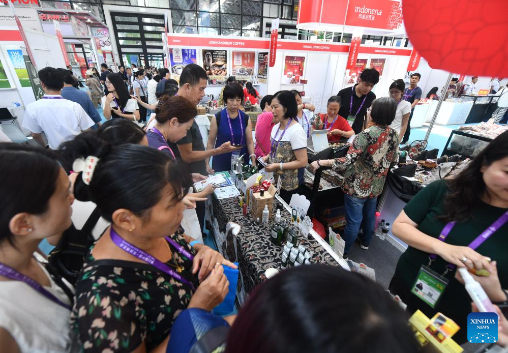 People purchase goods from Indonesia during the 22nd China-ASEAN Expo at Nanning International Convention and Exhibition Center in Nanning, capital of south China's Guangxi Zhuang Autonomous Region, Sept. 17, 2025. The 22nd China-ASEAN Expo and the China-ASEAN Business and Investment Summit kicked off here on Wednesday. (Xinhua/Huang Xiaobang)