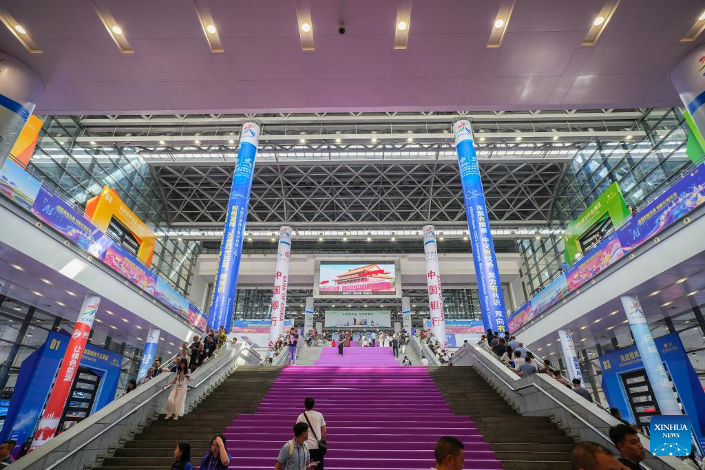 This photo taken on Sept. 17, 2025 shows an interior view of the Nanning International Convention and Exhibition Center in Nanning, capital of south China's Guangxi Zhuang Autonomous Region. The 22nd China-ASEAN Expo and the China-ASEAN Business and Investment Summit kicked off here on Wednesday. (Xinhua/Zhou Tinglu)