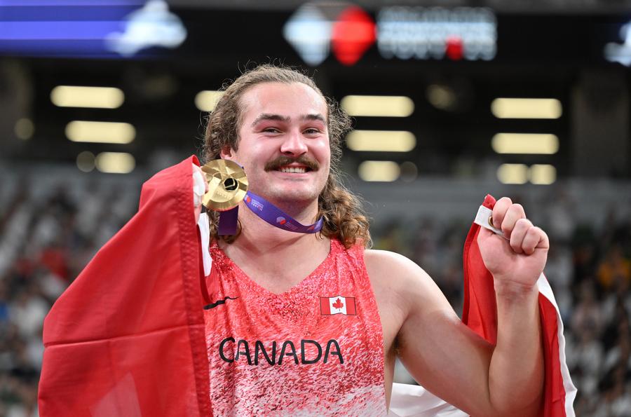 TOKYO, Sept. 16 (Xinhua) -- Canada's Ethan Katzberg retained his hammer throw world title with an event record of 84.70 meters, while Kenya's Faith Kipyegon extended her dominance in middle-distance running by winning her fourth 1,500m world title at the World Athletics Championships here on Tuesday.