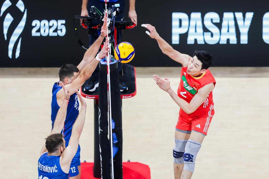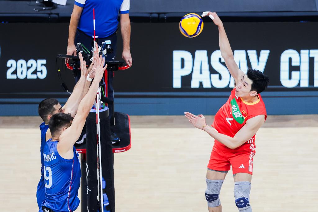 Jiang Chuan (R) of China spikes the ball during the pool H match between China and Serbia at the FIVB Men's World Championship 2025 in Pasay City, the Philippines, on Sept. 16, 2025. (Xinhua/Rouelle Umali) Li Tianyue of China digs the ball during the pool H match between China and Serbia at the FIVB Men's World Championship 2025 in Pasay City, the Philippines, on Sept. 16, 2025. (Xinhua/Rouelle Umali)Wang Bin of China digs the ball during the pool H match between China and Serbia at the FIVB Men's World Championship 2025 in Pasay City, the Philippines, on Sept. 16, 2025. (Xinhua/Rouelle Umali) Players of Serbia celebrate after scoring a point during the pool H match between China and Serbia at the FIVB Men's World Championship 2025 in Pasay City, the Philippines, on Sept. 16, 2025. (Xinhua/Rouelle Umali) Players of Serbia celebrate after scoring a point during the pool H match between China and Serbia at the FIVB Men's World Championship 2025 in Pasay City, the Philippines, on Sept. 16, 2025. (Xinhua/Rouelle Umali)Drazen Luburic of Serbia spikes the ball during the pool H match between China and Serbia at the FIVB Men's World Championship 2025 in Pasay City, the Philippines, on Sept. 16, 2025. (Xinhua/Rouelle Umali) Miran Kujundzic of Serbia spikes the ball during the pool H match between China and Serbia at the FIVB Men's World Championship 2025 in Pasay City, the Philippines, on Sept. 16, 2025. (Xinhua/Rouelle Umali) Players of Serbia celebrate during the pool H match between China and Serbia at the FIVB Men's World Championship 2025 in Pasay City, the Philippines, on Sept. 16, 2025. (Xinhua/Rouelle Umali) Pavle Peric (Front) of Serbia competes during the pool H match between China and Serbia at the FIVB Men's World Championship 2025 in Pasay City, the Philippines, on Sept. 16, 2025. (Xinhua/Rouelle Umali) Wang Bin of China competes during the pool H match between China and Serbia at the FIVB Men's World Championship 2025 in Pasay City, the Philippines, on Sept. 16, 2025. (Xinhua/Rouelle Umali) Wang Bin of China competes during the pool H match between China and Serbia at the FIVB Men's World Championship 2025 in Pasay City, the Philippines, on Sept. 16, 2025. (Xinhua/Rouelle Umali) Liu Libin of China competes during the pool H match between China and Serbia at the FIVB Men's World Championship 2025 in Pasay City, the Philippines, on Sept. 16, 2025. (Xinhua/Rouelle Umali)
