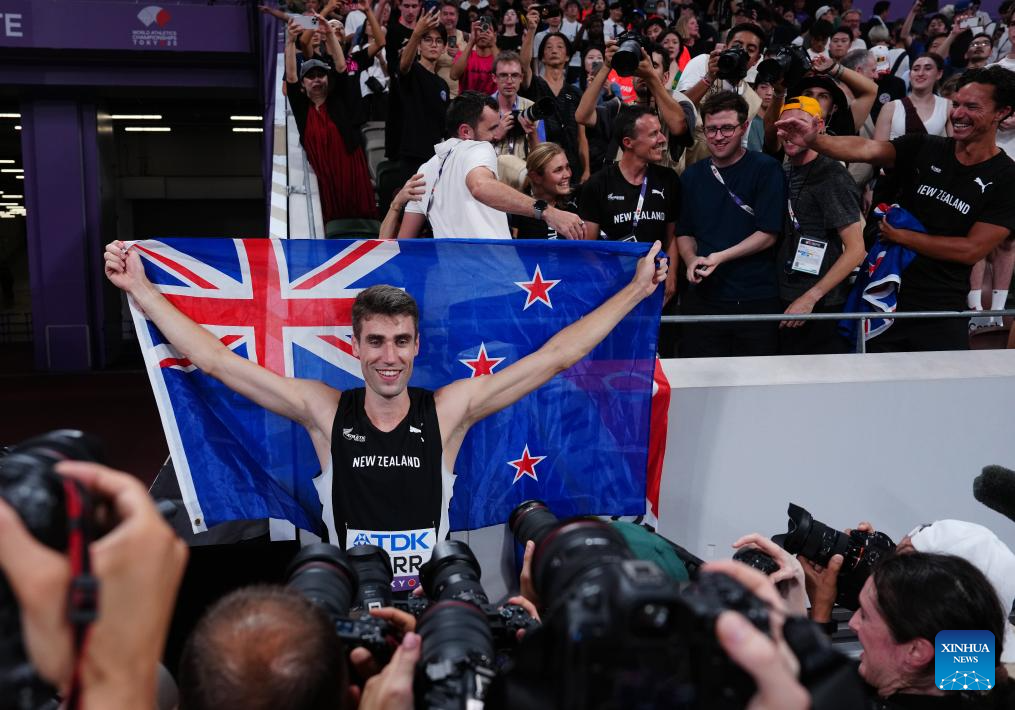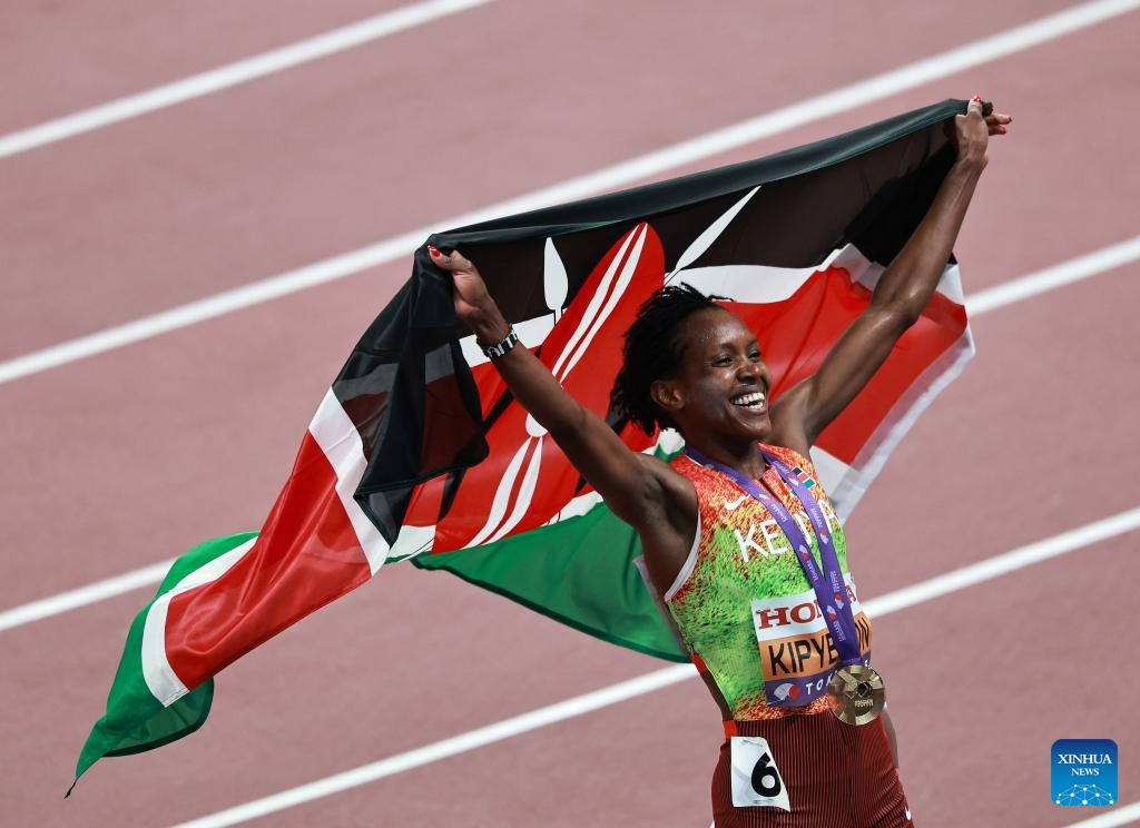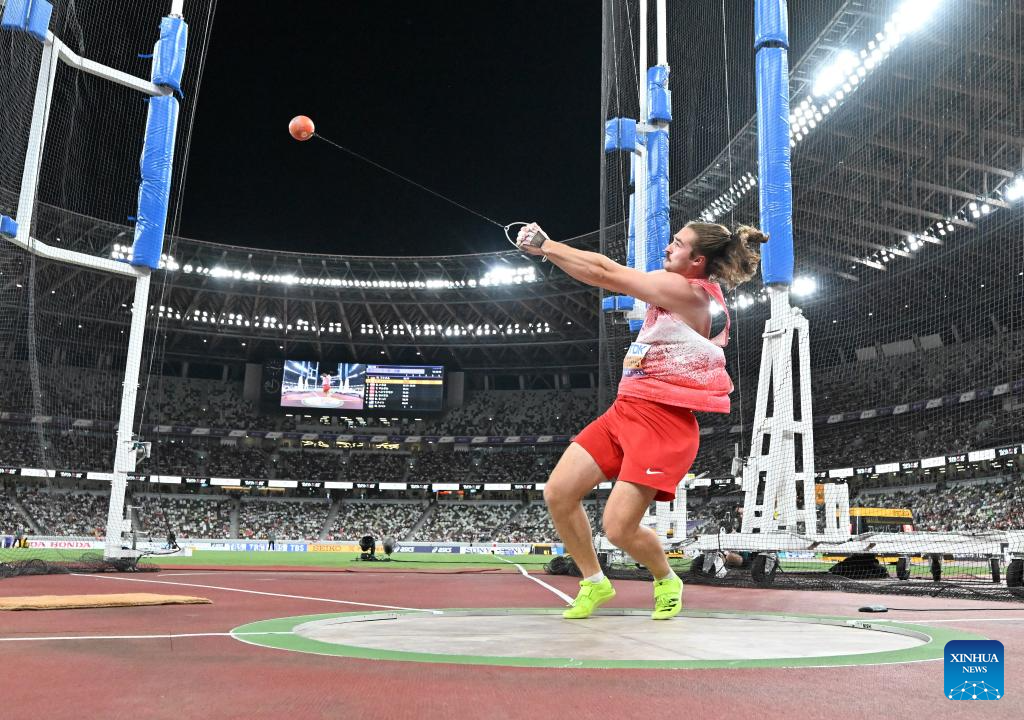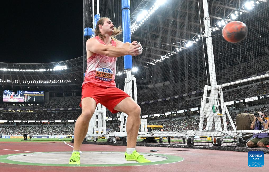 TOKYO, Sept. 16 (Xinhua) -- Canada's Ethan Katzberg retained his hammer throw world title with an event record of 84.70 meters, while Kenya's Faith Kipyegon extended her dominance in middle-distance running by winning her fourth 1,500m world title at the World Athletics Championships here on Tuesday.