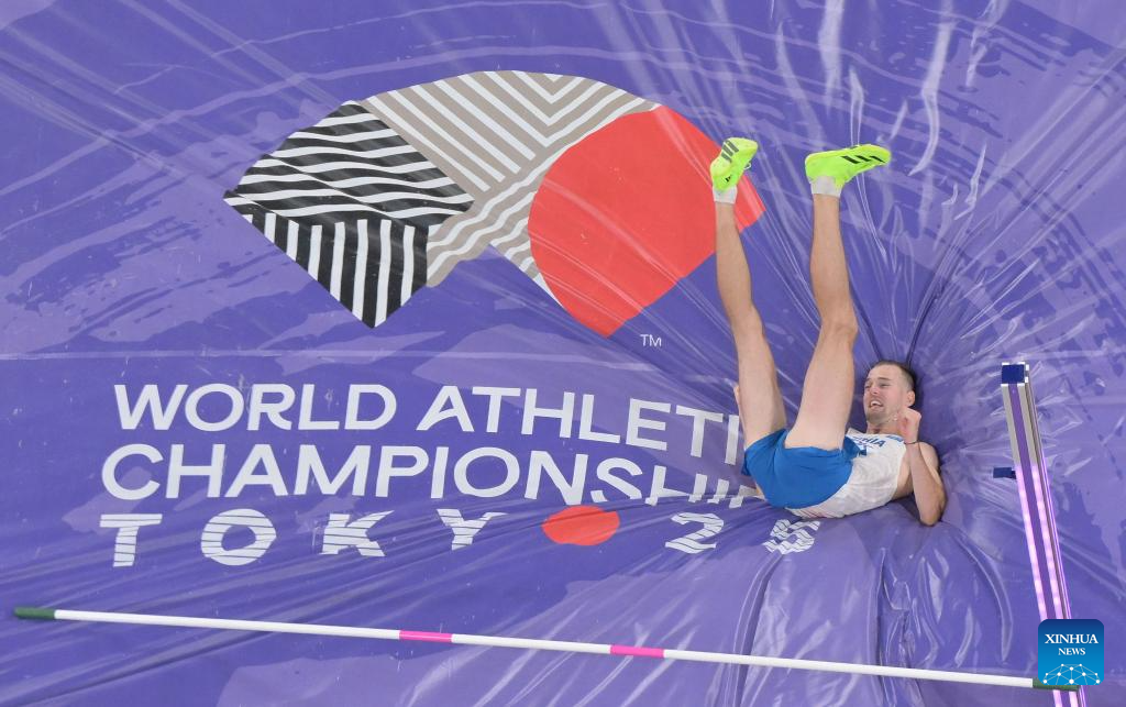 Jan Stefela of the Czech Republic competes the men's high jump final at the 2025 World Athletics Championships in Tokyo, Japan, Sept. 16, 2025. (Xinhua/Li Ming)