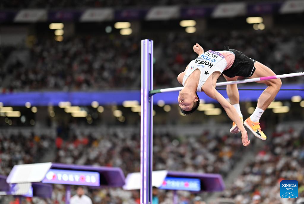 Woo Sanghyeok of South Korea competes the men's high jump final at the 2025 World Athletics Championships in Tokyo, Japan, Sept. 16, 2025. (Xinhua/Song Yanhua)