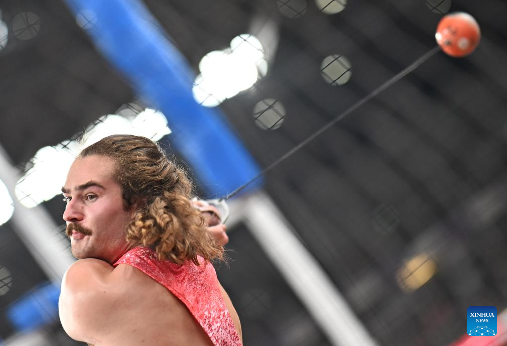 Ethan Katzberg of Canada competes during the men's hammer throw final at the 2025 World Athletics Championships in Tokyo, Japan, Sept. 16, 2025. (Xinhua/Song Yanhua)