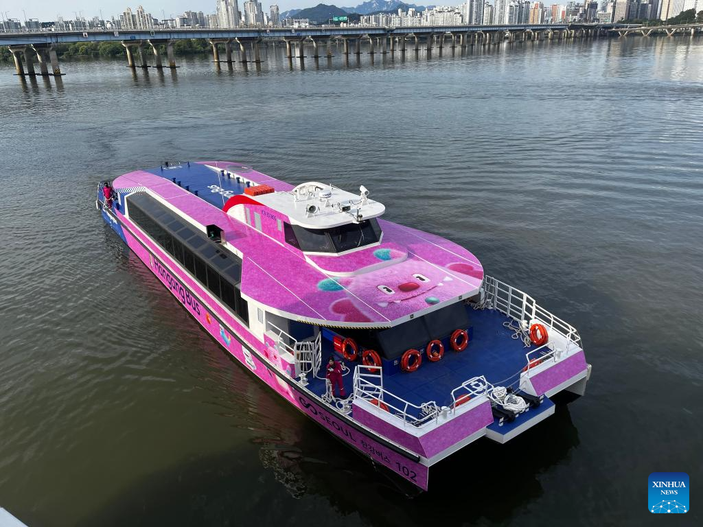 The "Hangang Bus" makes its trial voyage on the Han River in Seoul, South Korea, Sept. 17, 2025. According to the Seoul metropolitan government, the "Hangang Bus" will officially begin operation on Sept. 18. (Xinhua)