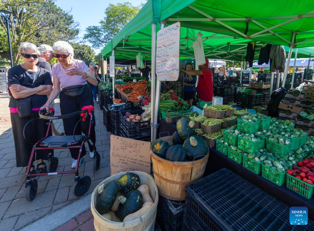 People shop at a farmers' market in Toronto, Canada, Sept. 16, 2025. Canada's Consumer Price Index (CPI) rose 1.9 percent year over year in August, up from a 1.7 percent increase in July, Statistics Canada said Tuesday. (Photo by Zou Zheng/Xinhua)