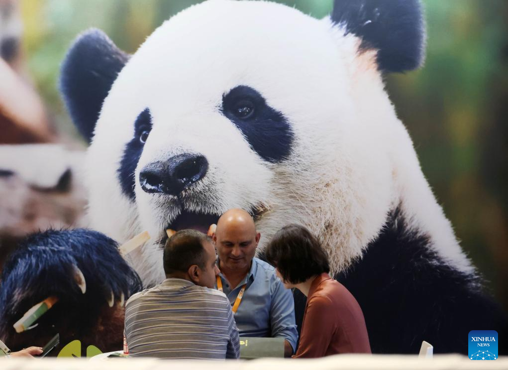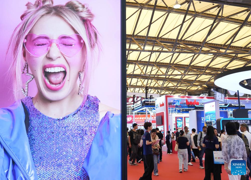 People visit the 26th edition of the Sign China expo in Shanghai, east China, Sept. 17, 2025. The three-day expo on advertising industry, which kicked off at Shanghai New International Expo Centre on Wednesday, showcases products and technologies including advanced advertising production equipment, advertising materials, LED advertising lighting, and LED displays brought by approximately 800 exhibitors from home and abroad. (Photo by Pan Zongyuan/Xinhua)