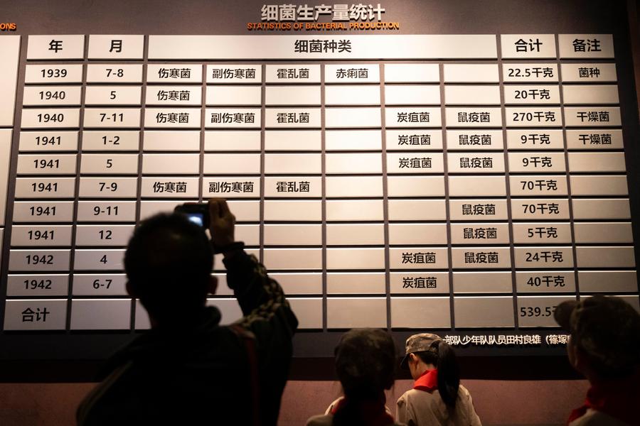 People line up to visit the Exhibition Hall of Evidence of Crimes Committed by Unit 731 of the Japanese Imperial Army in Harbin, capital of northeast China's Heilongjiang Province, Sept. 18, 2025. (Photo by Zhang Dawei/Xinhua)A visitor sheds tears at the Exhibition Hall of Evidence of Crimes Committed by Unit 731 of the Japanese Imperial Army in Harbin, capital of northeast China's Heilongjiang Province, Sept. 18, 2025. (Xinhua/Zhang Tao)People visit the Exhibition Hall of Evidence of Crimes Committed by Unit 731 of the Japanese Imperial Army in Harbin, capital of northeast China's Heilongjiang Province, Sept. 18, 2025. (Xinhua/Wang Jianwei)People visit the Exhibition Hall of Evidence of Crimes Committed by Unit 731 of the Japanese Imperial Army in Harbin, capital of northeast China's Heilongjiang Province, Sept. 18, 2025. (Xinhua/Zhang Tao)Visitors lay flowers to victims of crimes committed by Unit 731 at the Exhibition Hall of Evidence of Crimes Committed by Unit 731 of the Japanese Imperial Army in Harbin, capital of northeast China's Heilongjiang Province, Sept. 18, 2025. (Xinhua/Zhang Tao)People visit the Exhibition Hall of Evidence of Crimes Committed by Unit 731 of the Japanese Imperial Army in Harbin, capital of northeast China's Heilongjiang Province, Sept. 18, 2025. (Xinhua/Wang Song)Visitors shed tears at the Exhibition Hall of Evidence of Crimes Committed by Unit 731 of the Japanese Imperial Army in Harbin, capital of northeast China's Heilongjiang Province, Sept. 18, 2025. (Photo by Zhang Dawei/Xinhua)People visit the Exhibition Hall of Evidence of Crimes Committed by Unit 731 of the Japanese Imperial Army in Harbin, capital of northeast China's Heilongjiang Province, Sept. 18, 2025. (Xinhua/Wang Jianwei)People walk past a poster of the film "Evil Unbound" at the Exhibition Hall of Evidence of Crimes Committed by Unit 731 of the Japanese Imperial Army in Harbin, capital of northeast China's Heilongjiang Province, Sept. 18, 2025. (Xinhua/Wang Jianwei)A visitor takes photos of a board displaying statistics of bacterial production at the Exhibition Hall of Evidence of Crimes Committed by Unit 731 of the Japanese Imperial Army in Harbin, capital of northeast China's Heilongjiang Province, Sept. 18, 2025. (Xinhua/Zhang Tao)Visitors look at the drawing of bacteria bomb developed by Unit 731 at the Exhibition Hall of Evidence of Crimes Committed by Unit 731 of the Japanese Imperial Army in Harbin, capital of northeast China's Heilongjiang Province, Sept. 18, 2025. (Xinhua/Zhang Tao)A visitor leaves a note at the Exhibition Hall of Evidence of Crimes Committed by Unit 731 of the Japanese Imperial Army in Harbin, capital of northeast China's Heilongjiang Province, Sept. 18, 2025. (Xinhua/Zhang Tao)People walk past a poster of the film "Evil Unbound" at the Exhibition Hall of Evidence of Crimes Committed by Unit 731 of the Japanese Imperial Army in Harbin, capital of northeast China's Heilongjiang Province, Sept. 18, 2025. (Photo by Zhang Dawei/Xinhua)People visit the Exhibition Hall of Evidence of Crimes Committed by Unit 731 of the Japanese Imperial Army in Harbin, capital of northeast China's Heilongjiang Province, Sept. 18, 2025. (Xinhua/Wang Jianwei)People visit the Exhibition Hall of Evidence of Crimes Committed by Unit 731 of the Japanese Imperial Army in Harbin, capital of northeast China's Heilongjiang Province, Sept. 18, 2025. (Xinhua/Wang Jianwei)This photo taken on Sept. 18, 2025 shows teaching materials of Unit 731 on display at the Exhibition Hall of Evidence of Crimes Committed by Unit 731 of the Japanese Imperial Army in Harbin, capital of northeast China's Heilongjiang Province. (Xinhua/Zhang Tao)People visit the Exhibition Hall of Evidence of Crimes Committed by Unit 731 of the Japanese Imperial Army in Harbin, capital of northeast China's Heilongjiang Province, Sept. 18, 2025. (Xinhua/Wang Jianwei)This photo taken on Sept. 18, 2025 shows the bacteriological incubators on display at the Exhibition Hall of Evidence of Crimes Committed by Unit 731 of the Japanese Imperial Army in Harbin, capital of northeast China's Heilongjiang Province. (Xinhua/Zhang Tao)■