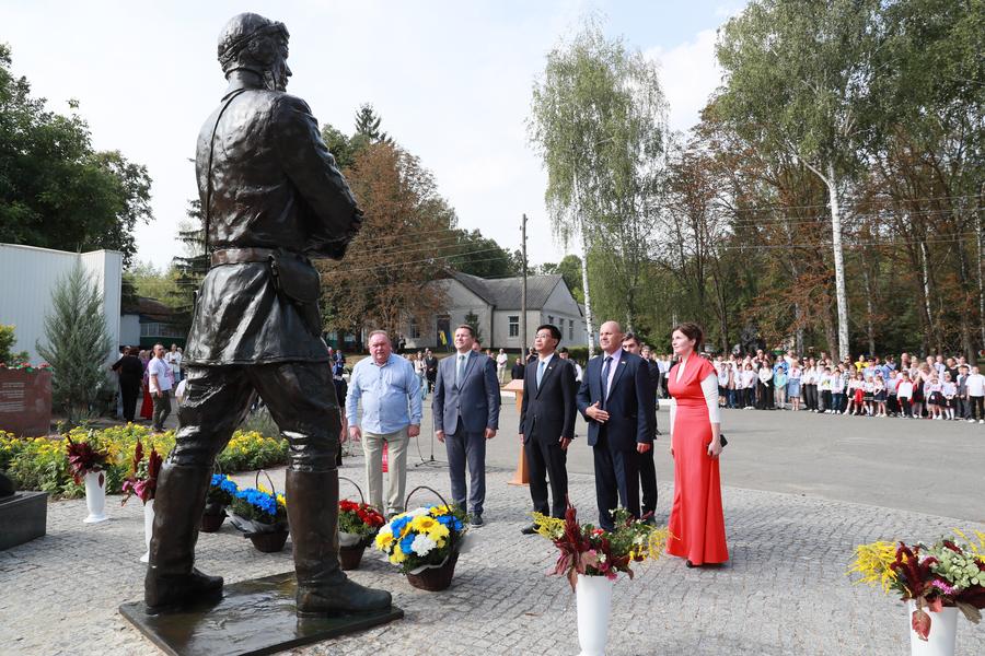 KIEV, Sept. 18 (Xinhua) -- Amid bright flowers and evergreens, a towering bronze statue of pilot Grigori Kulishenko now stands in the central square of Cherepyn, a remote village in Ukraine's highlands along the Dnipro River.