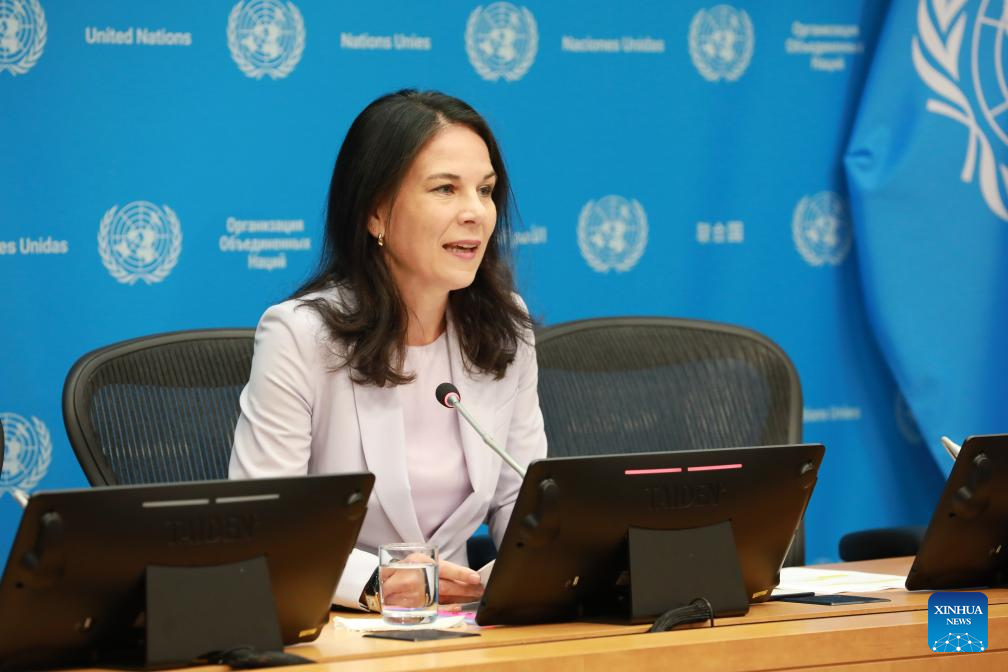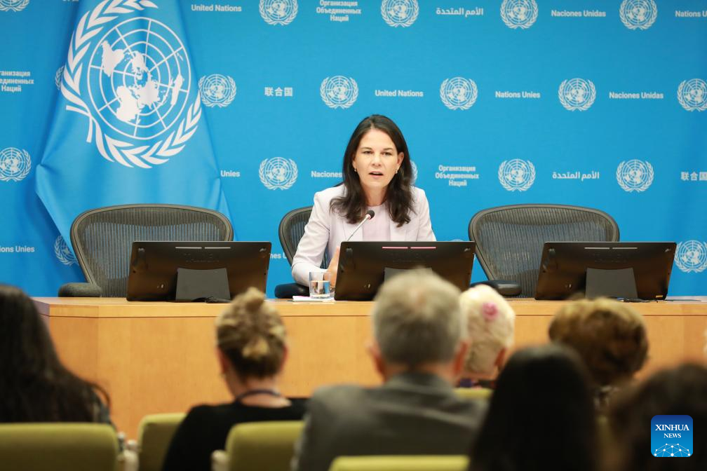 Annalena Baerbock, president of the 80th session of the United Nations General Assembly (UNGA), speaks to the press at the UN headquarters in New York, Sept. 17, 2025. The 80th session of the UN General Assembly (UNGA) will focus on such issues as advancing the UN80 reform agenda, guiding the selection of the next UN secretary-general, and regaining momentum on the Sustainable Development Goals (SDGs), said Baerbock on Wednesday. (Xinhua/Xie E)
