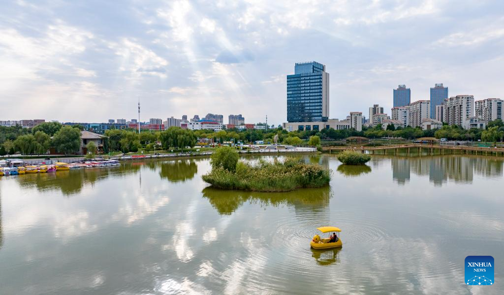 An aerial drone photo taken on Sept. 17, 2025 shows a view of Haibao Park in Yinchuan, northwest China's Ningxia Hui Autonomous Region.