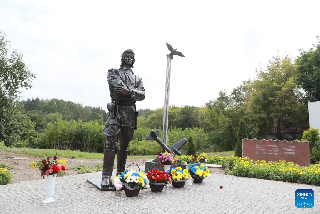 KIEV, Sept. 18 (Xinhua) -- Amid bright flowers and evergreens, a towering bronze statue of pilot Grigori Kulishenko now stands in the central square of Cherepyn, a remote village in Ukraine's highlands along the Dnipro River.