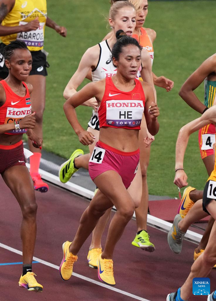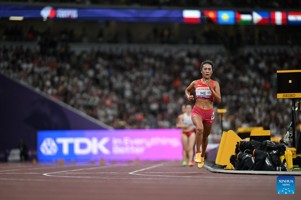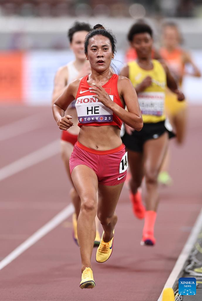 He Wuga of China competes during the women's 5000m heat at the 2025 World Athletics Championships in Tokyo, Japan, Sept. 18, 2025. (Xinhua/Jiang Han)