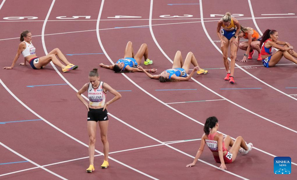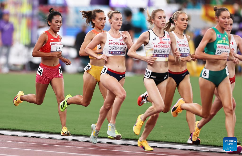 Athletes are seen after the women's 5000m heat at the 2025 World Athletics Championships in Tokyo, Japan, Sept. 18, 2025. (Xinhua/Lui Siu Wai)