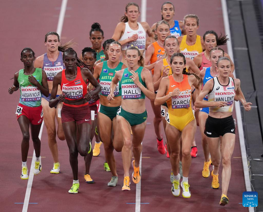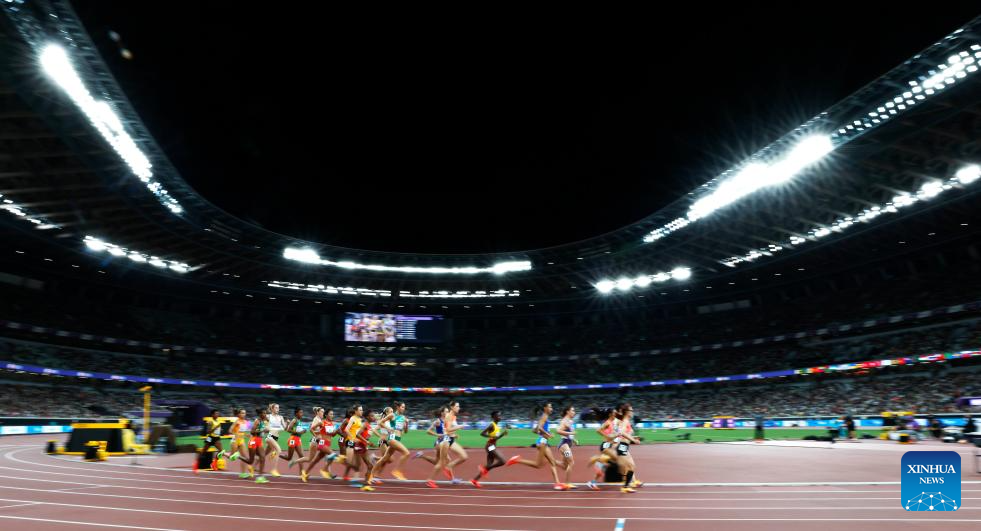 Athletes compete during the women's 5000m heat at the 2025 World Athletics Championships in Tokyo, Japan, Sept. 18, 2025. (Xinhua/Wang Lili)