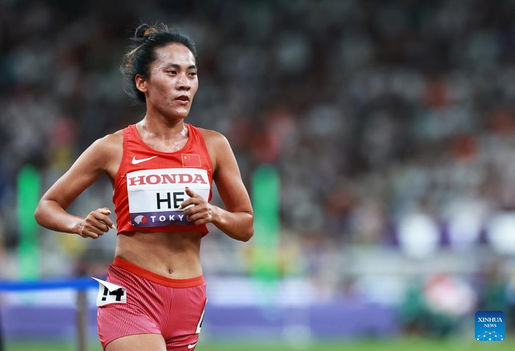 He Wuga of China competes during the women's 5000m heat at the 2025 World Athletics Championships in Tokyo, Japan, Sept. 18, 2025. (Xinhua/Jia Haocheng)