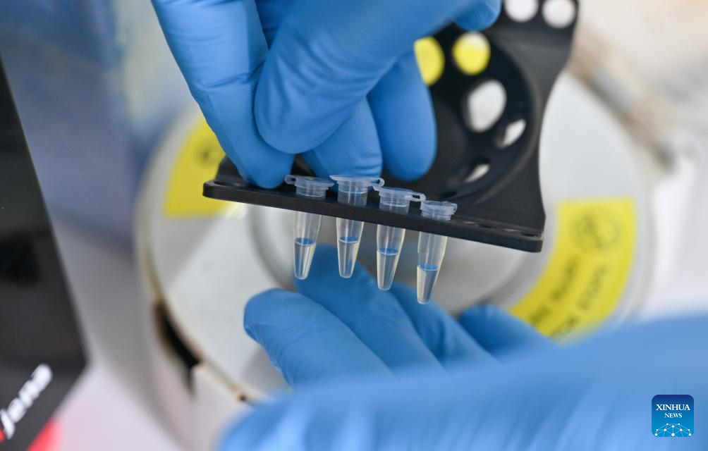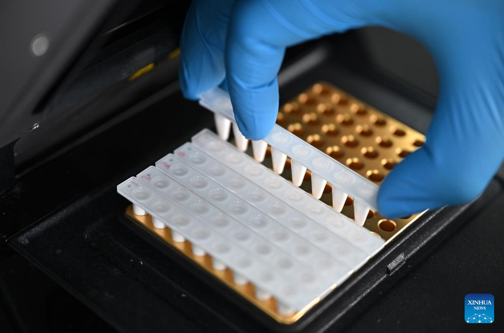 This photo taken on Sept. 17, 2025 shows yellowfin tunas undergoing an experiment at the South China Sea Fisheries Research Institute of the Chinese Academy of Fishery Sciences in Lingshui Li Autonomous County, south China's Hainan Province. In recent years, Hainan Province has accelerated the development of its fishery industry by giving full play to its advantages in marine fisheries.