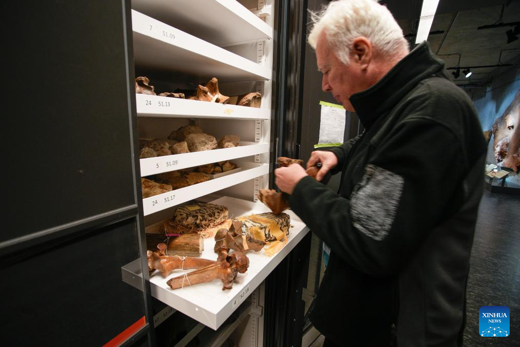 A paleontologist checks fossil and skeleton collections at the Beaty Biodiversity Centre of the University of British Columbia in Vancouver, British Columbia, Canada, Sept. 17, 2025.