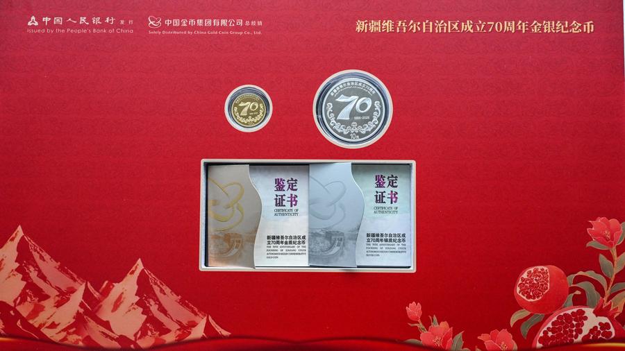 URUMQI, Sept. 19 (Xinhua) -- The People's Bank of China on Friday issued a set of gold and silver commemorative coins to mark the 70th anniversary of the establishment of Xinjiang Uygur Autonomous Region in northwest China.