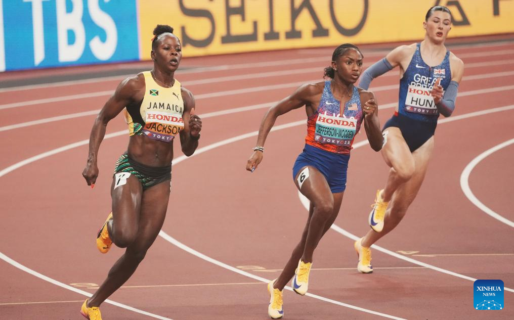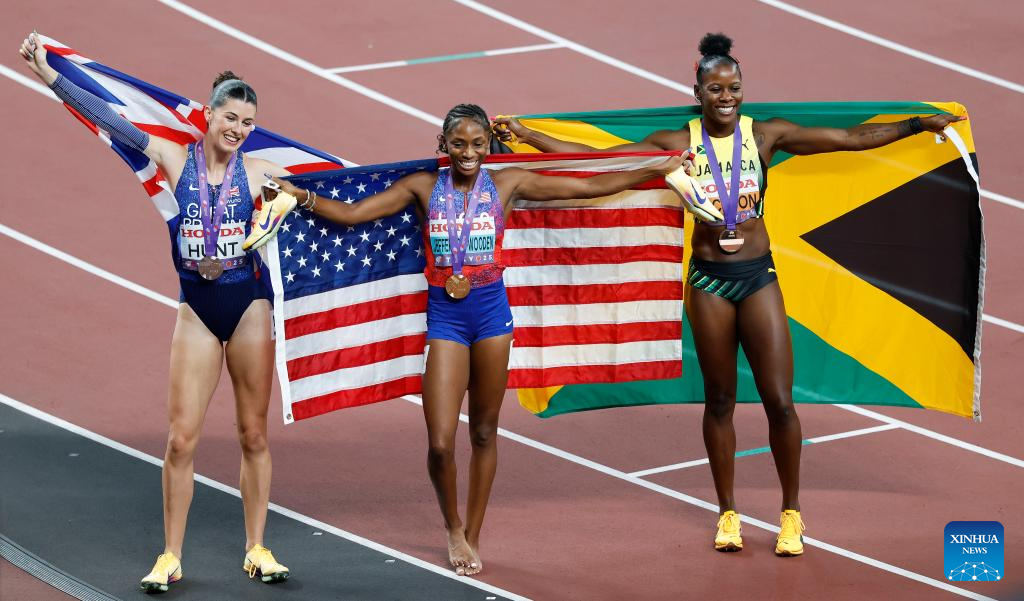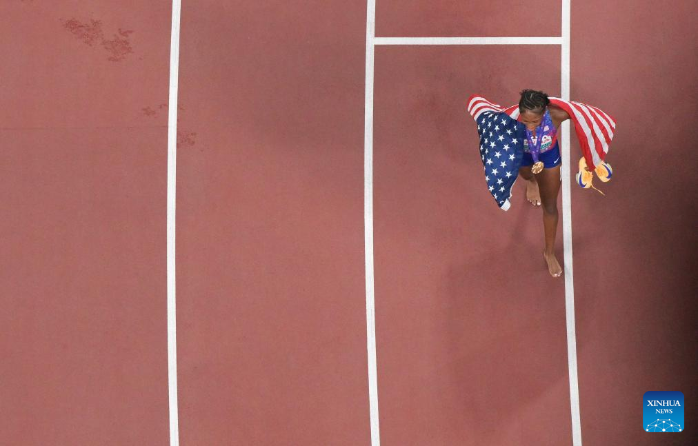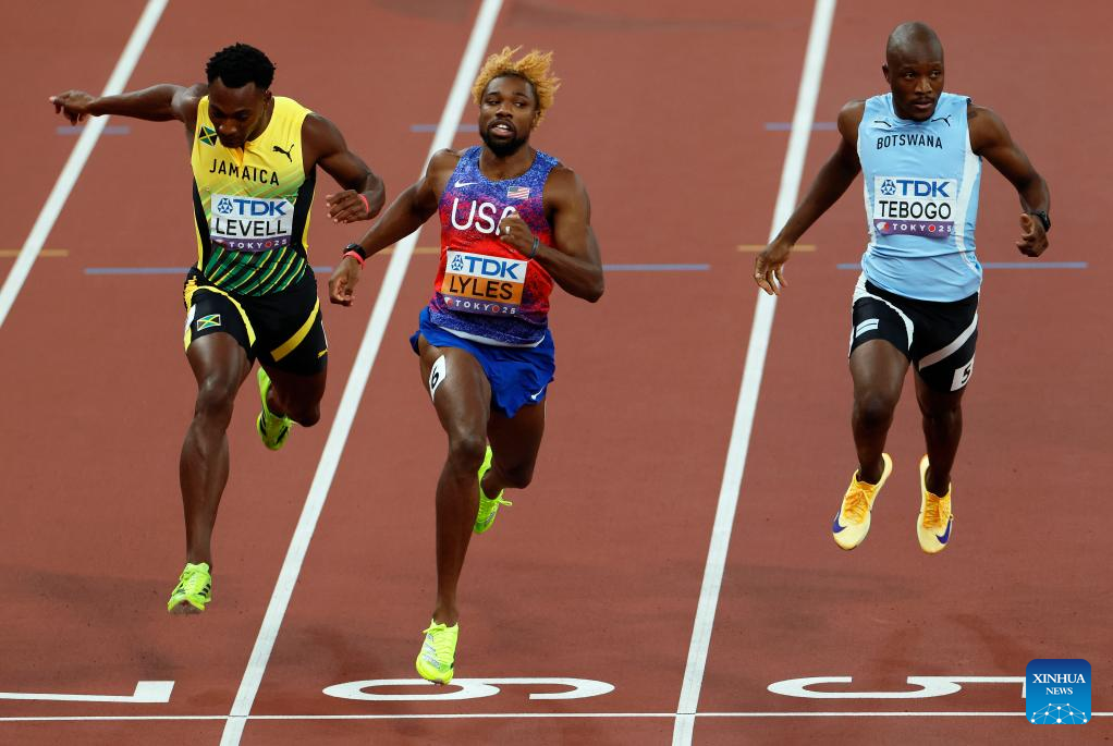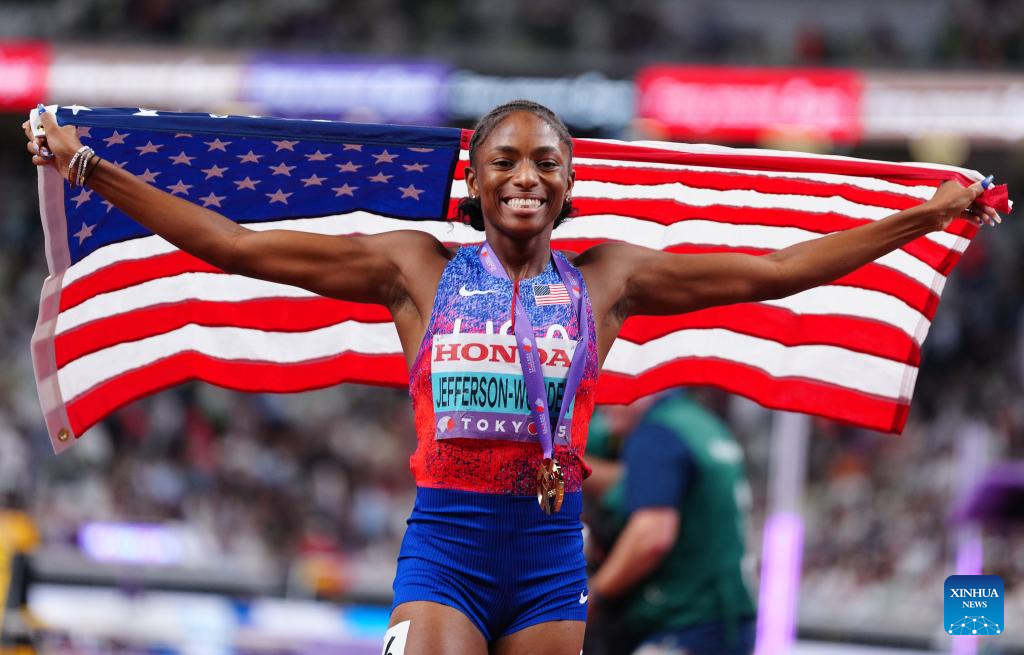 TOKYO, Sept. 19 (Xinhua) -- American sprinters showcased their dominance in the 200 meters at the World Athletics Championships on Friday, with Noah Lyles clinching his fourth consecutive victory in the men's event, while Melissa Jefferson-Wooden secured the women's title.