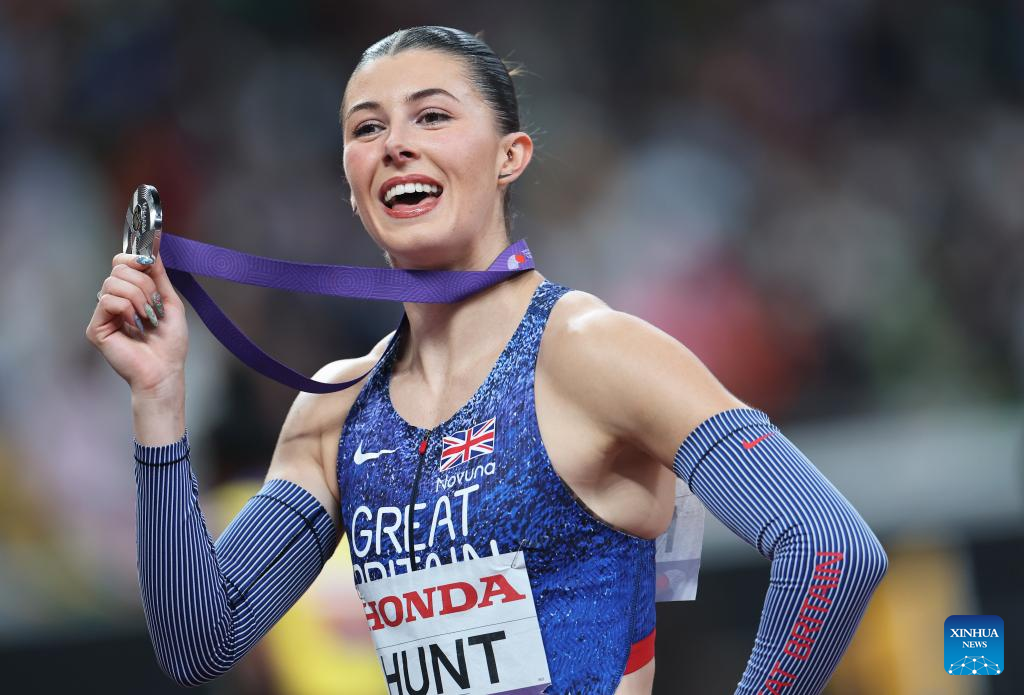 Amy Hunt of Britain celebrates after the women's 200m final at the 2025 World Athletics Championships in Tokyo, Japan, Sept. 19, 2025. (Xinhua/Li Gang)