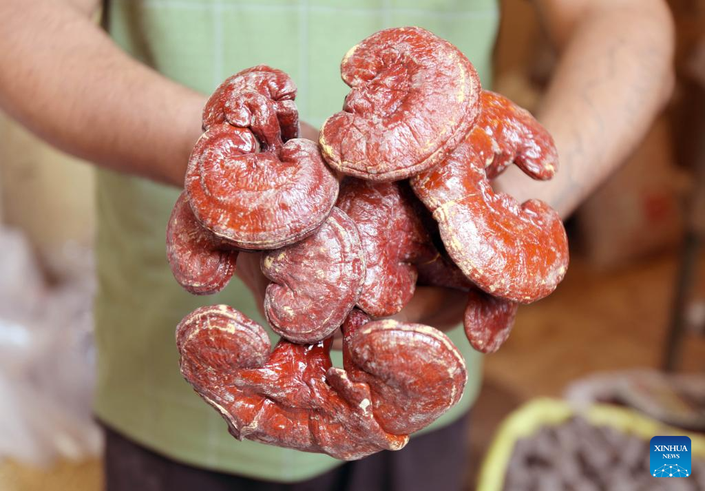 Reishi mushrooms, which are widely used in traditional Chinese medicine, have gained popularity in Iraq due to the beneficial effects. (Xinhua/Khalil Dawood)