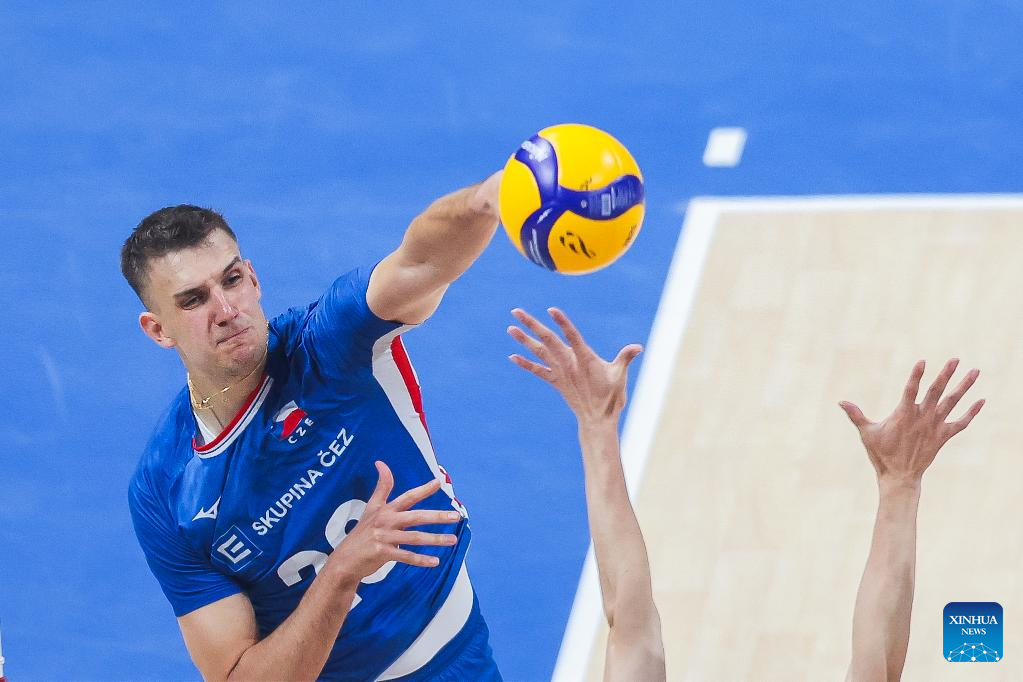 Patrik Indra of the Czech Republic competes during the pool H match between China and the Czech Republic at the FIVB Men's World Championship 2025 in Pasay City, the Philippines, Sept. 18, 2025. (Xinhua/Rouelle Umali)