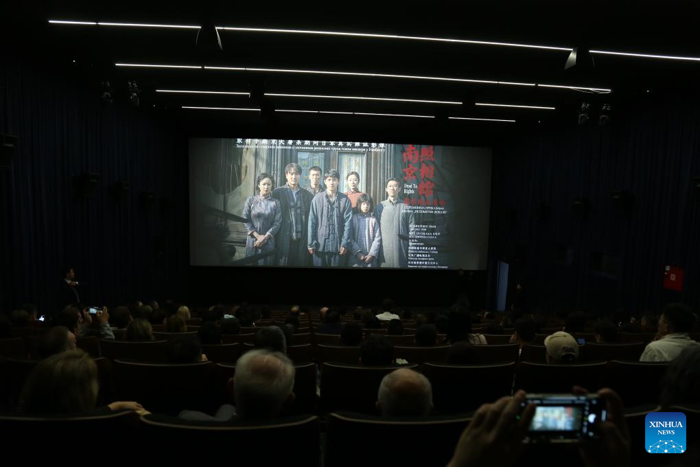 Audience watch the Chinese wartime film "Dead to Rights" (Nanjing Photo Studio) at a cinema in Belgrade, Serbia, Sept. 18, 2025. (Xinhua/Chen Ying)