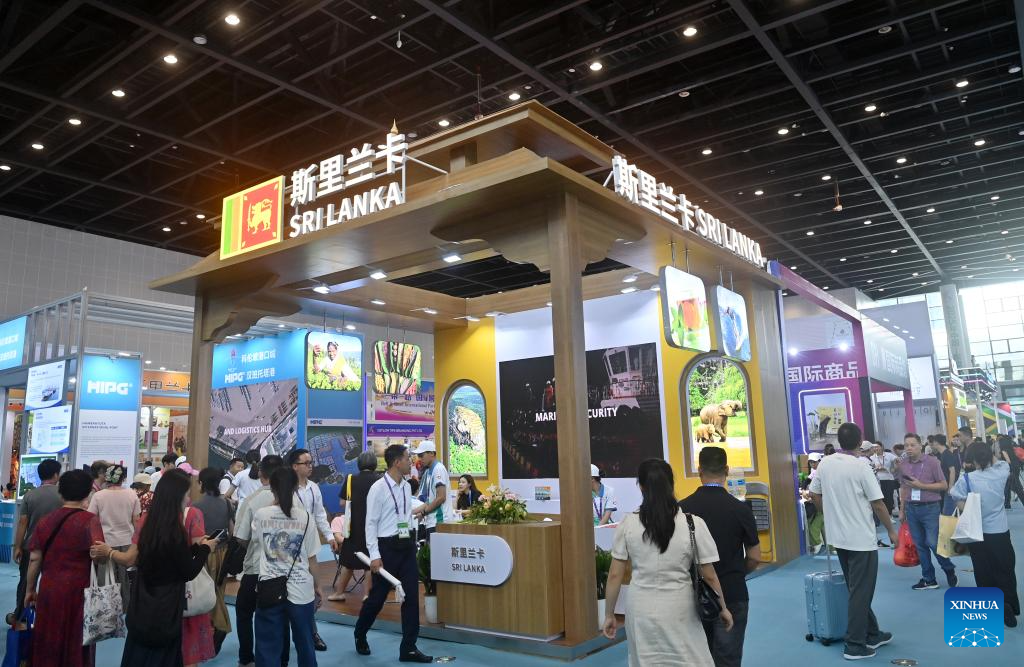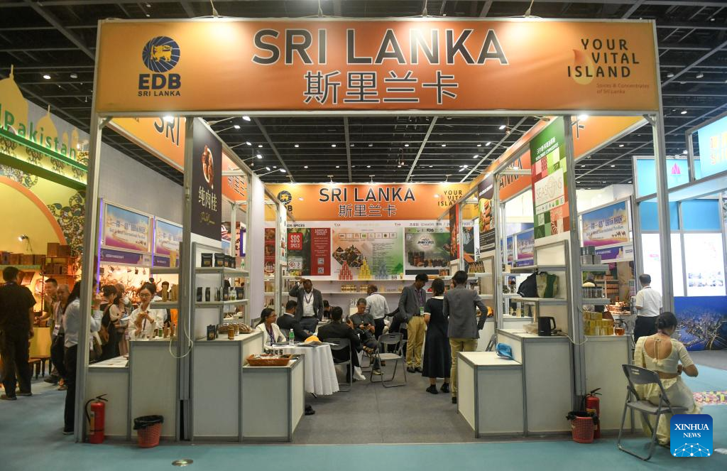 This photo taken on Sept. 18, 2025 shows a view of the Sri Lanka pavilion during the ongoing 22nd China-ASEAN Expo in Nanning, south China's Guangxi Zhuang Autonomous Region. Products from Sri Lanka draw attention and popularity at the 22nd China-ASEAN Expo. (Xinhua/Lu Boan)