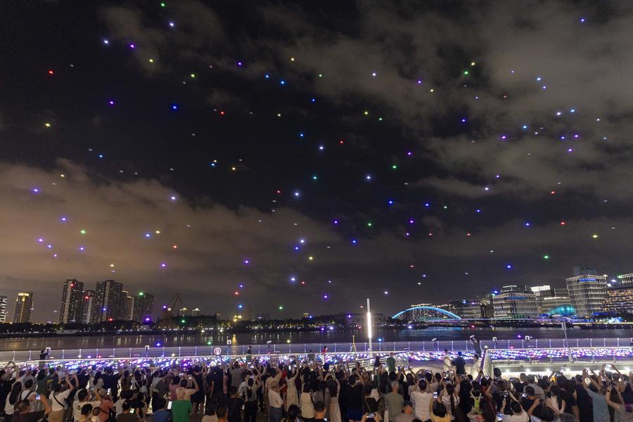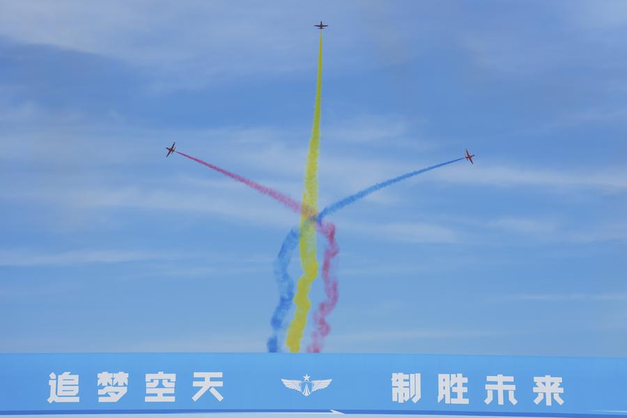 Aircraft of China's Red Falcon Aerobatic Team perform during the 2025 aviation open-day activities of the Chinese People's Liberation Army Air Force and Changchun Air Show in Changchun, northeast China's Jilin Province, Sept. 19, 2025. The events kicked off here on Friday. (Xinhua/Xu Chang)A visitor tries smart glasses at the 2025 China International Consumer Electronics Exposition (CICE) in Qingdao, east China's Shandong Province, Sept. 19, 2025. Themed "Intelligence Connects All, AI Empowers the Future," this year's CICE kicked off here on Friday, showcasing cutting-edge technologies and innovative products. (Xinhua/Li Ziheng)Herds of livestock forage on the Zhalute grassland in Tongliao City, north China's Inner Mongolia Autonomous Region, Sept. 19, 2025. (Xinhua/Lian Zhen)People enjoy a drone light show during the 2nd Shining Shanghai festival in Shanghai, east China, Sept. 19, 2025. The opening ceremony of the festival was held here on Friday. The one-month festival with one main venue and 16 sub-venues features 177 theme activities of shining feast. (Xinhua/Wang Xiang)A woman views photos at the 25th Pingyao International Photography Festival (PIP) in Pingyao ancient town in Jinzhong, north China's Shanxi Province, Sept. 19, 2025. The 25th PIP kicked off here on Friday, showcasing artworks from over 5,000 photographers from home and abroad. (Xinhua/Zhan Yan)The logo of FAB Paris is seen at the Grand Palais, Paris, France, Sept. 19, 2025. FAB Paris opens to the public from Sept. 20 to 24, bringing together around 100 internationally renowned exhibitors. (Xinhua/Gao Jing)This photo taken on Sept. 17, 2025 shows a sunset view in Tabriz, Iran. (Xinhua/Shadati)Gold medalist Noah Lyles of the United States celebrates after the men's 200m final at the 2025 World Athletics Championships in Tokyo, Japan, Sept. 19, 2025. (Xinhua/Song Yanhua)■