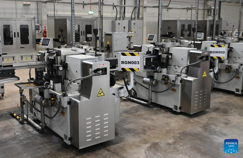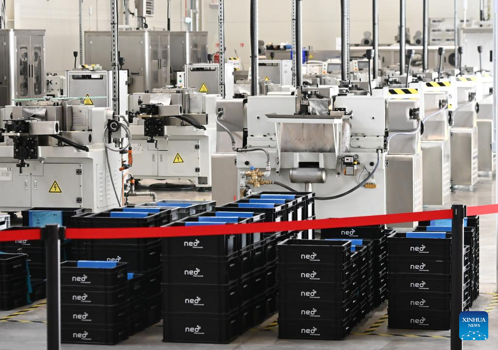 Photo taken on Sept. 19, 2025 shows inside view of NEO magnetic plant in Narva, a city in northeastern Estonia. A plant producing rare-earth magnets for Europe's electric vehicle and wind-energy sectors opened Friday in Narva, Estonia. (Photo by Sergei Stepanov/Xinhua)