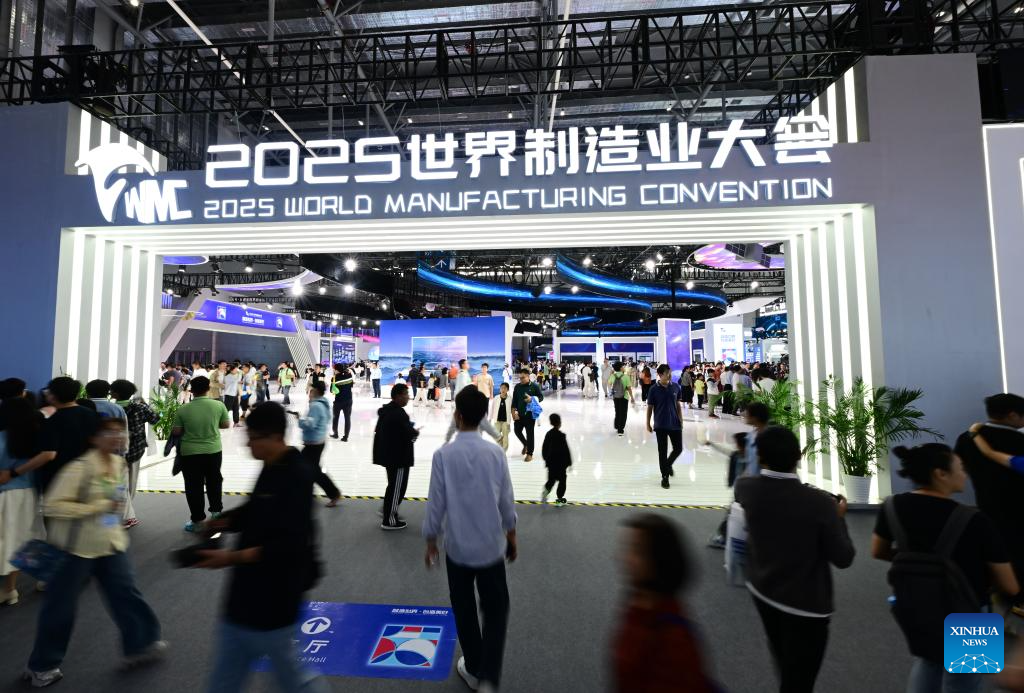 People visit the 2025 World Manufacturing Convention (WMC) in Hefei, east China's Anhui Province, Sept. 20, 2025. Themed "Intelligent Manufacturing For a Better Future", the 2025 WMC kicked off here on Saturday. (Xinhua/Zhou Mu)