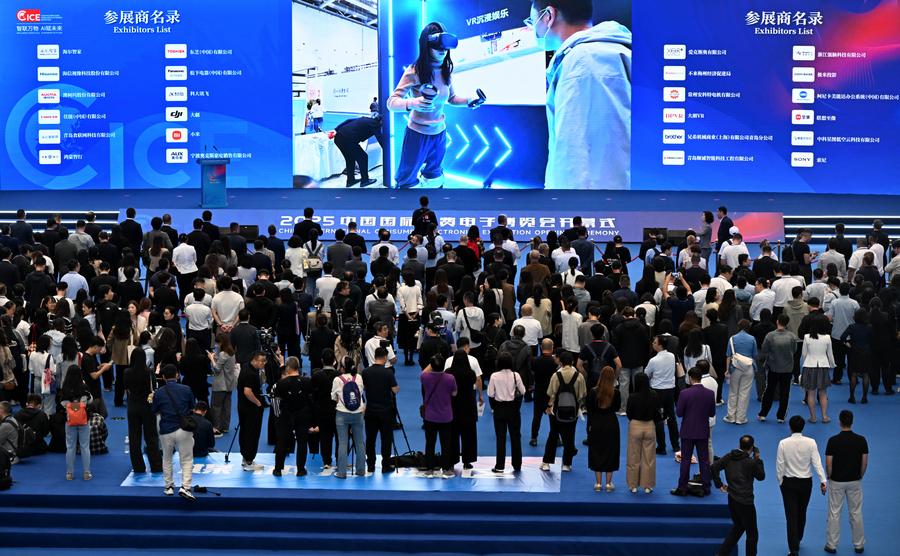 People enter the venue of the 2025 China International Consumer Electronics Exposition (CICE) in Qingdao, east China's Shandong Province, Sept. 19, 2025. (Xinhua/Li Ziheng)Robots are seen at the 2025 China International Consumer Electronics Exposition (CICE) in Qingdao, east China's Shandong Province, Sept. 19, 2025. (Xinhua/Li Ziheng)A woman takes a selfie while visiting the 2025 China International Consumer Electronics Exposition (CICE) in Qingdao, east China's Shandong Province, Sept. 19, 2025. (Xinhua/Li Ziheng)People visit the 2025 China International Consumer Electronics Exposition (CICE) in Qingdao, east China's Shandong Province, Sept. 19, 2025. (Xinhua/Li Ziheng)People visit the 2025 China International Consumer Electronics Exposition (CICE) in Qingdao, east China's Shandong Province, Sept. 19, 2025. (Xinhua/Li Ziheng)People visit the 2025 China International Consumer Electronics Exposition (CICE) in Qingdao, east China's Shandong Province, Sept. 19, 2025. (Xinhua/Li Ziheng)A robotic dog is seen at the 2025 China International Consumer Electronics Exposition (CICE) in Qingdao, east China's Shandong Province, Sept. 19, 2025. (Xinhua/Li Ziheng)People watch a promotion video at the opening ceremony of the 2025 China International Consumer Electronics Exposition (CICE) in Qingdao, east China's Shandong Province, Sept. 19, 2025. (Xinhua/Li Ziheng)People enter the venue of the 2025 China International Consumer Electronics Exposition (CICE) in Qingdao, east China's Shandong Province, Sept. 19, 2025. (Xinhua/Li Ziheng)■