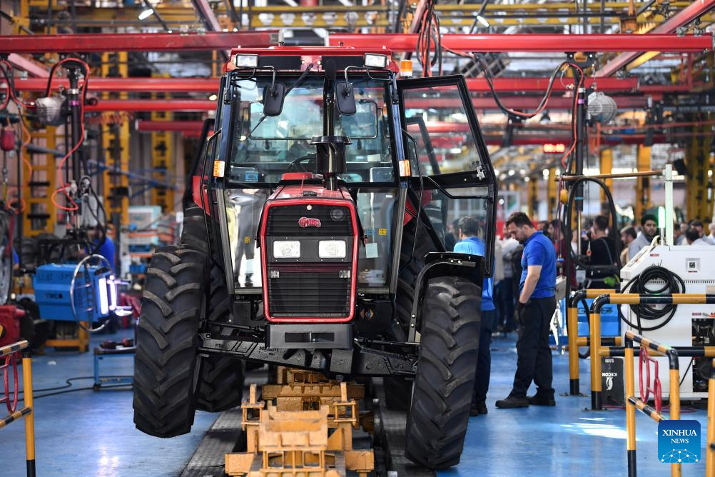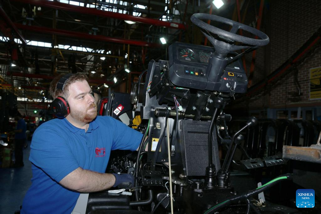 A technician checks the components of a tractor at a workshop of the Iran Tractor Manufacturing Co. in Tabriz, Iran, Sept. 17, 2025. The Iran Tractor Manufacturing Co. is considered one of the largest manufacturers of agricultural and industrial machinery in the Middle East. (Xinhua/Shadati)
