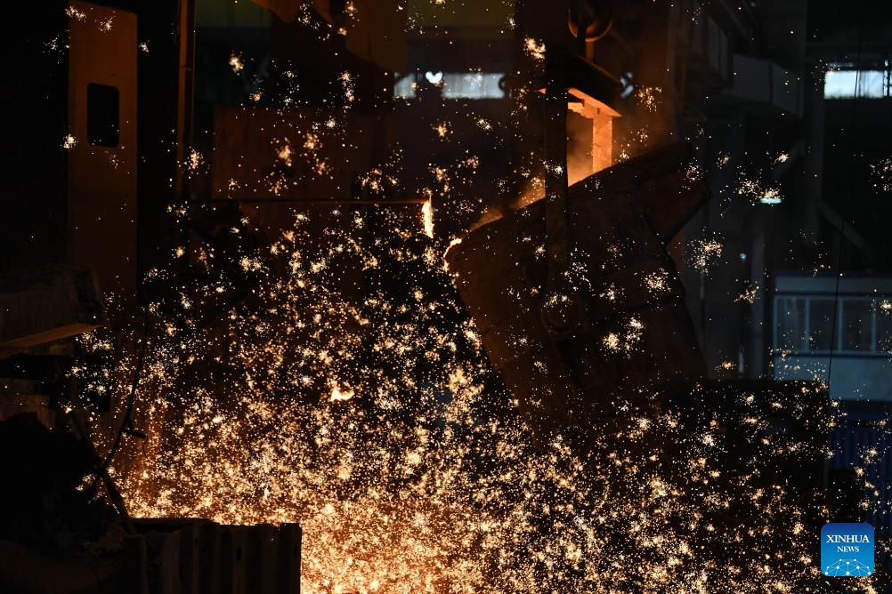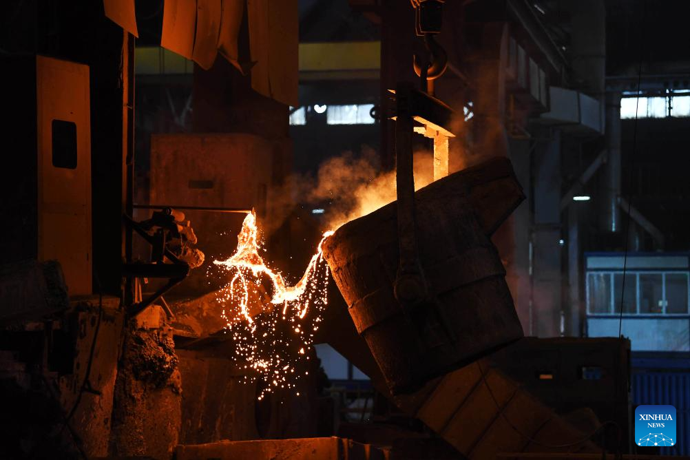 This photo taken on Sept. 17, 2025 shows an interior view of a smelting workshop of the Iran Tractor Manufacturing Co. in Tabriz, Iran. The Iran Tractor Manufacturing Co. is considered one of the largest manufacturers of agricultural and industrial machinery in the Middle East. (Xinhua/Shadati)