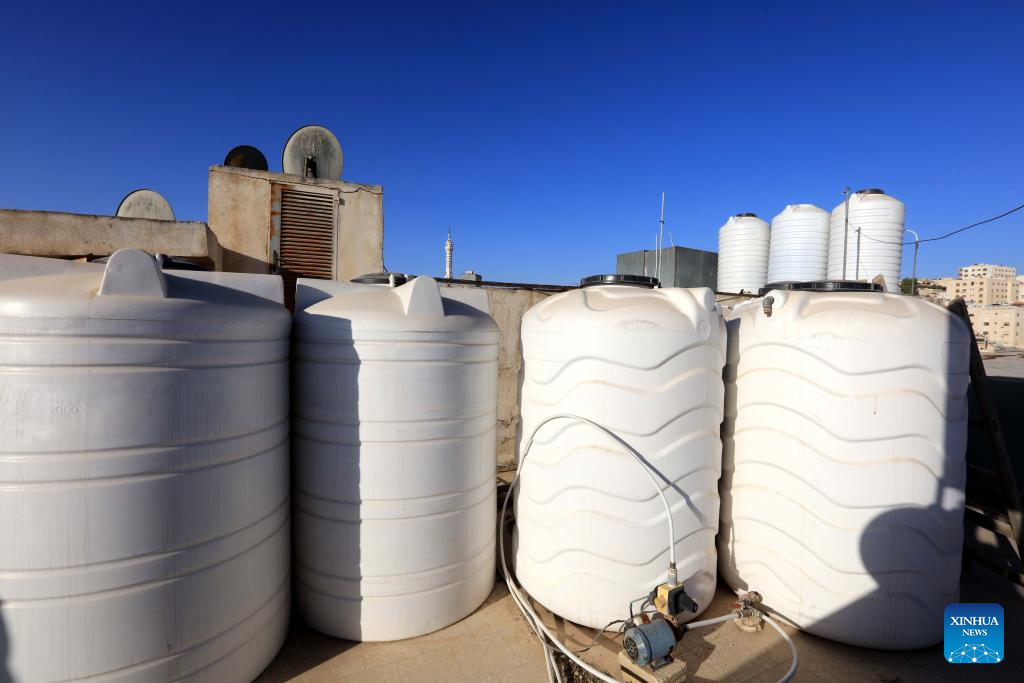Water tanks on the roof of households are pictured in Amman, Jordan, on Sept. 21, 2025. Jordan is grappling with one of the world's most severe water crises caused by climate change, over-pumping, and rising demand, as local authorities are trying to manage scarcity with a rotation system and large-scale infrastructure projects.(Photo by Mohammad Abu Ghosh/Xinhua)