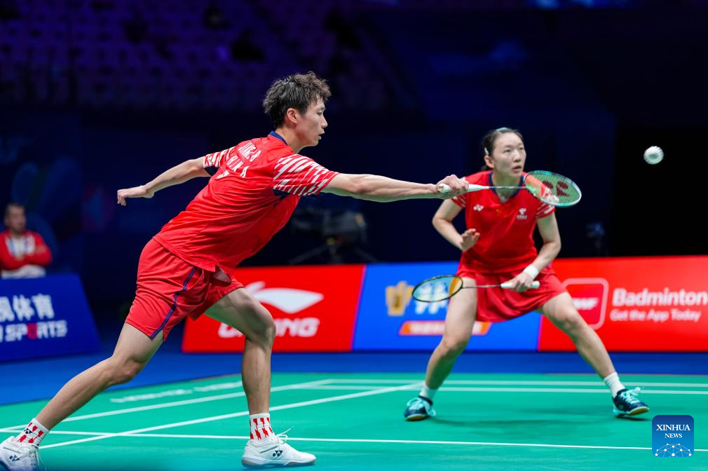 Dechapol Puavaranukroh (L)/Supissara Paewsampran of Thailand compete during the mixed doubles semifinal match against Jiang Zhenbang/Wei Yaxin of China at the China Masters 2025 in Shenzhen, south China's Guangdong Province, Sept. 20, 2025. (Xinhua/Sun Fei)