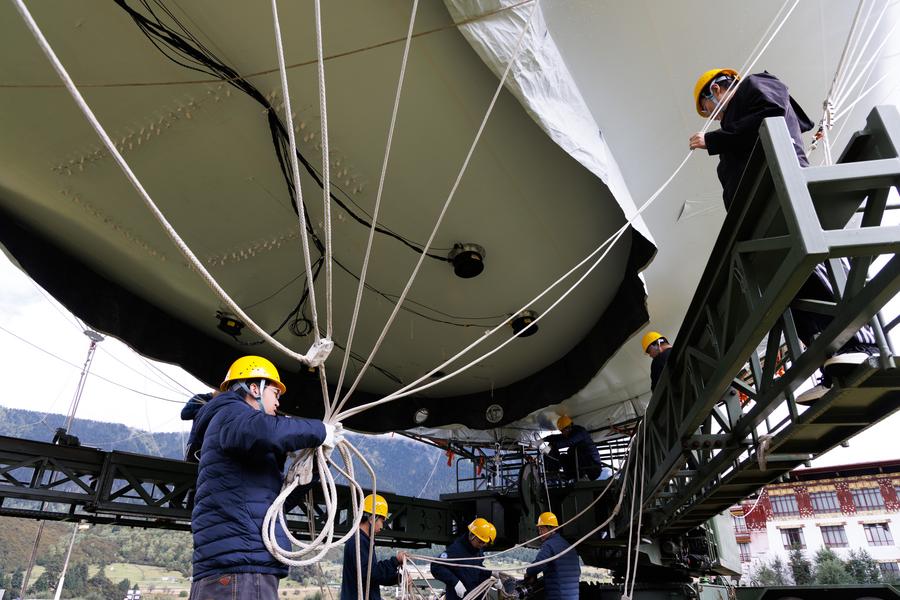 LHASA, Sept. 20 (Xinhua) -- Chinese scientists recently carried out the "Jimu-1" tethered balloon atmospheric observation experiment in Lulang, Nyingchi, southwest China's Xizang Autonomous Region, which is expected to provide a new perspective for unraveling the mysteries of the Qinghai-Tibet Plateau ecosystem.