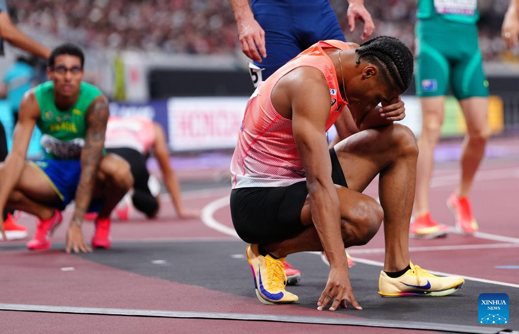 Nakajima Yuki Joseph of team Japan reacts after the men's 4x400m relay heats at the 2025 World Athletics Championships in Tokyo, Japan, Sept. 20, 2025. (Xinhua/Jia Haocheng)