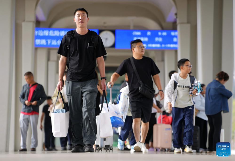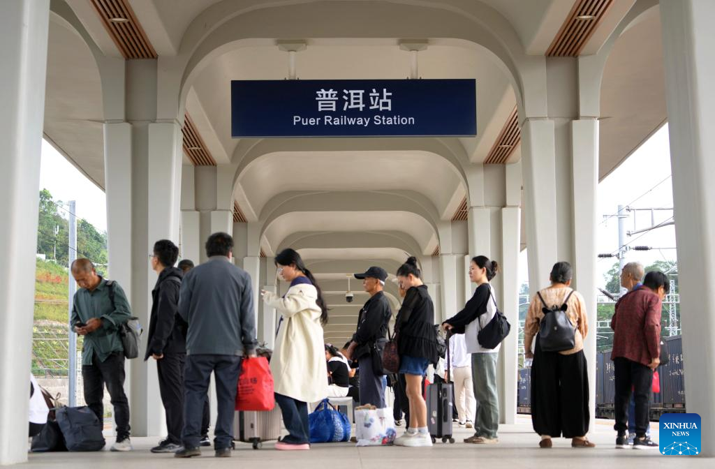 Passengers are pictured at Pu'er Railway Station in Pu'er City, southwest China's Yunnan Province, Sept. 20, 2025. As of Sept. 20, the China-Laos Railway has transported more than 59 million passengers since its opening in December 2021, according to China Railway Kunming Group Co., Ltd. (Xinhua/Xing Guangli)
